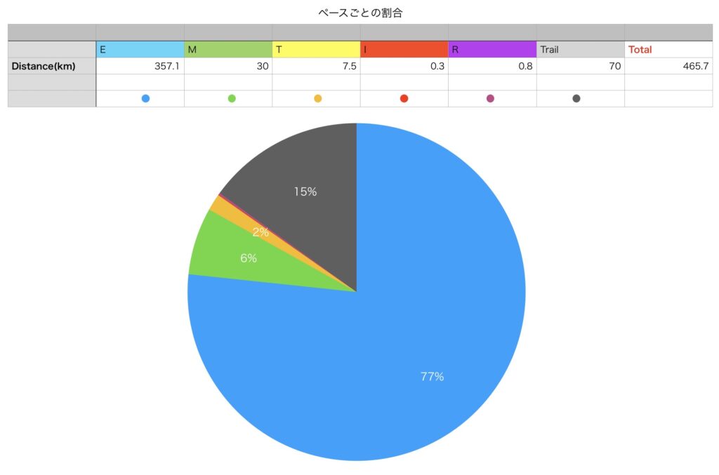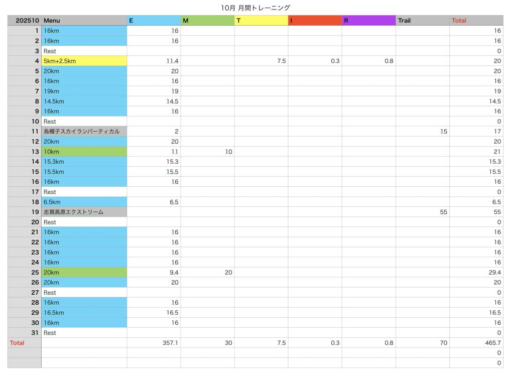 10月は11月のつくばマラソンに向けて、マラソンペースでの距離走を取り入れ、かつボリュームも増やすことを目標にしましたが、最終的には概ね理想通りの練習内容をこなすことができたと感じています。