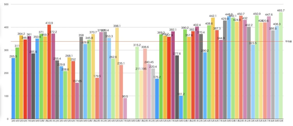 10月は急激に気温が下がり、それに伴い自身の体調も徐々に良くなっていった印象です。
